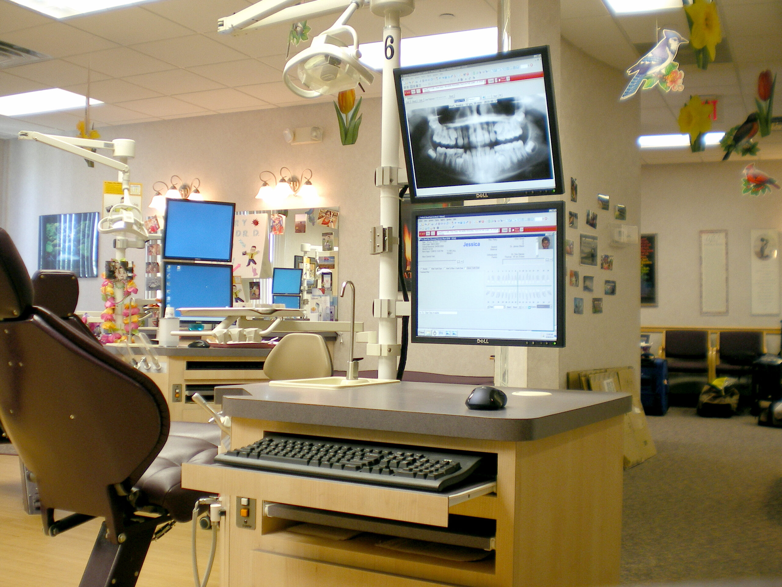 Staff can have have a treatment chart up as well as a full panoramic x-ray simultaneously.