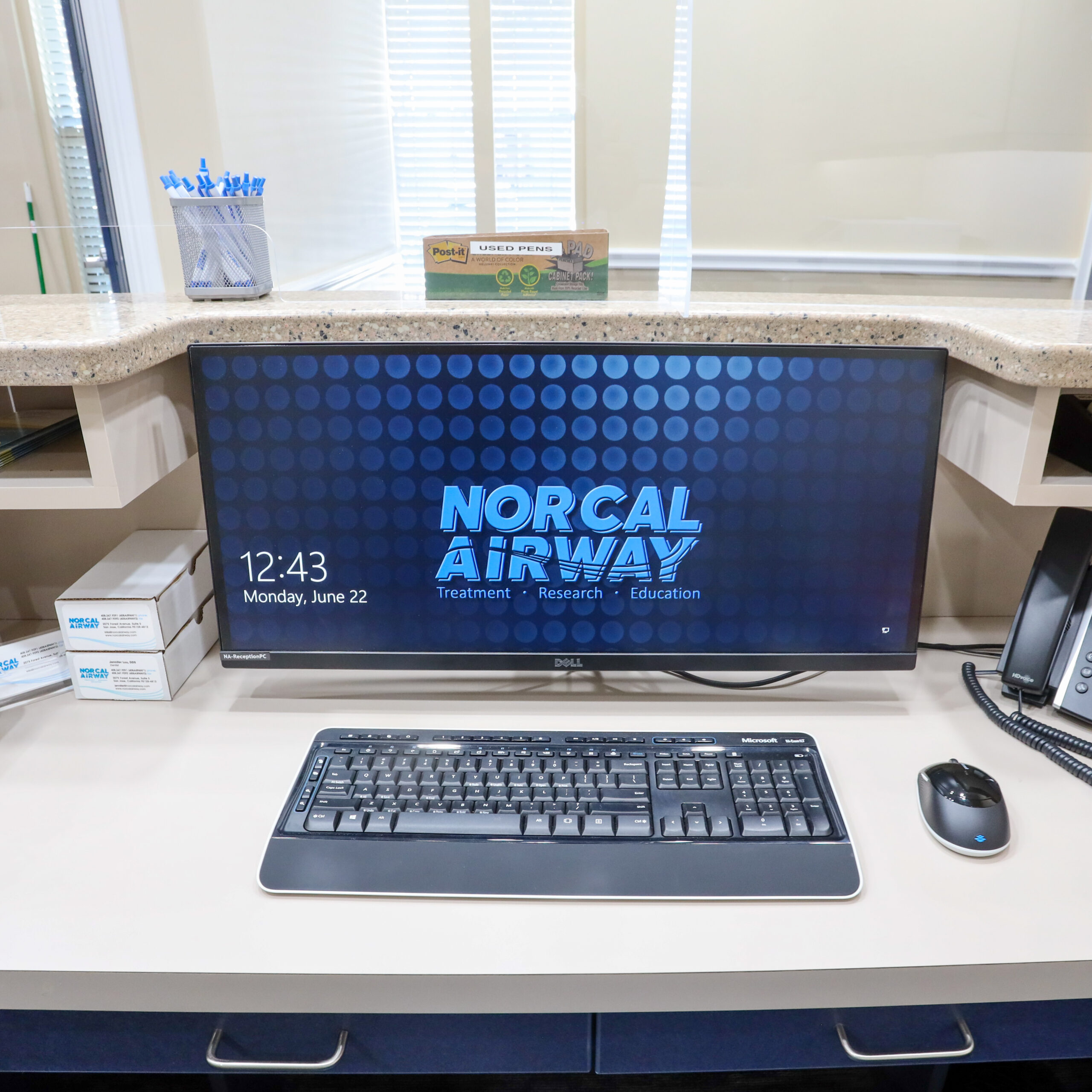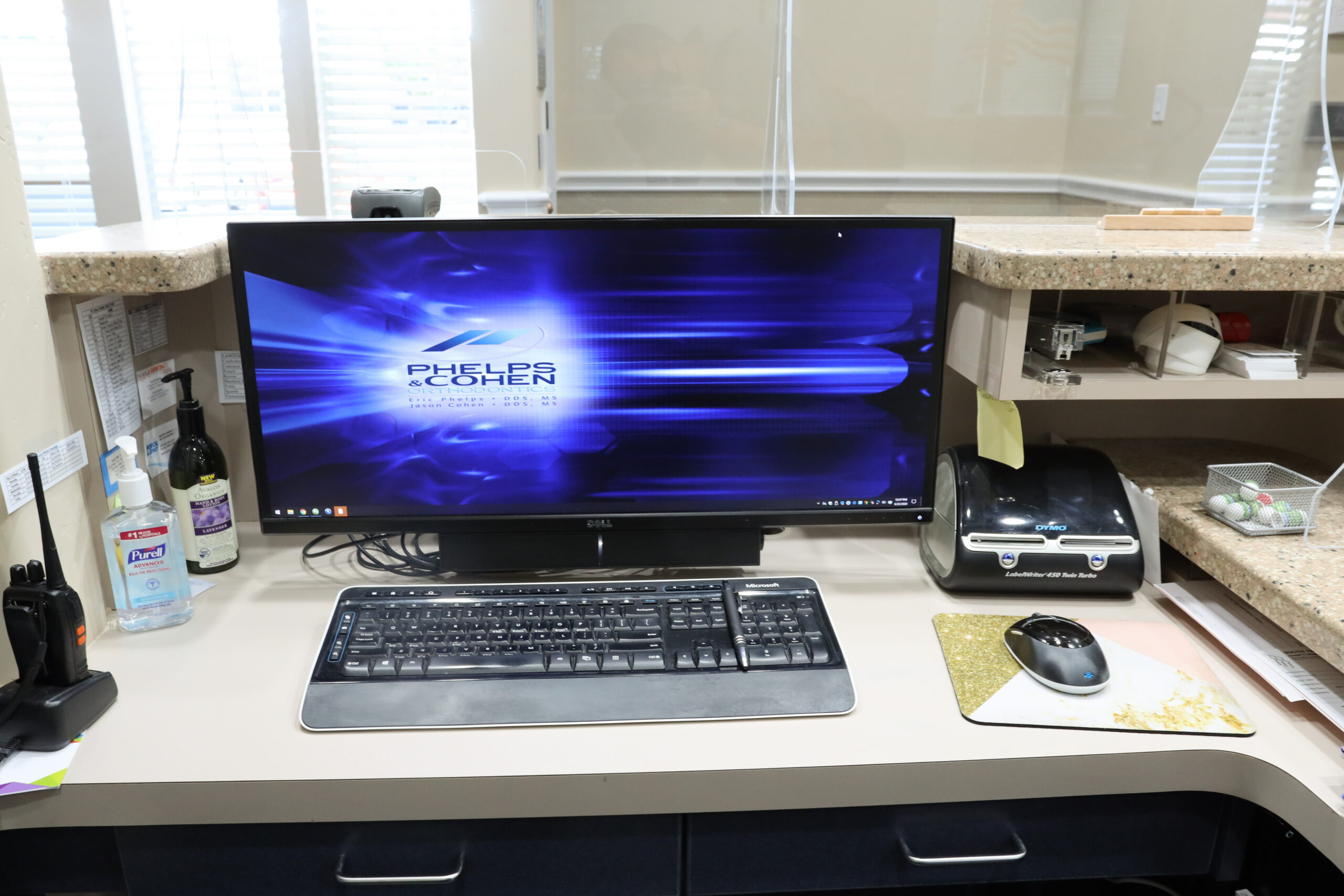To maximize the desk surface, it may be beneficial to cut a notch out of the upper part of the reception desk to make room.