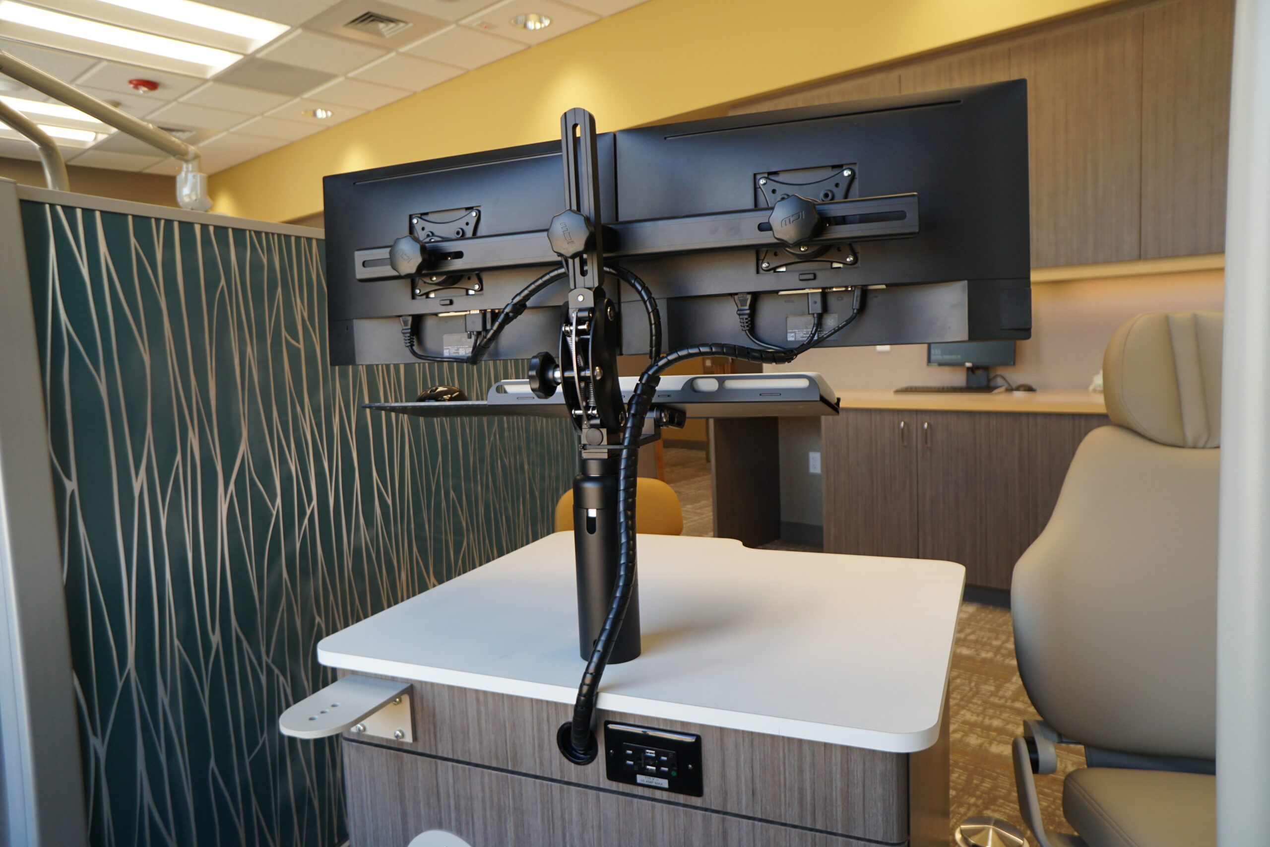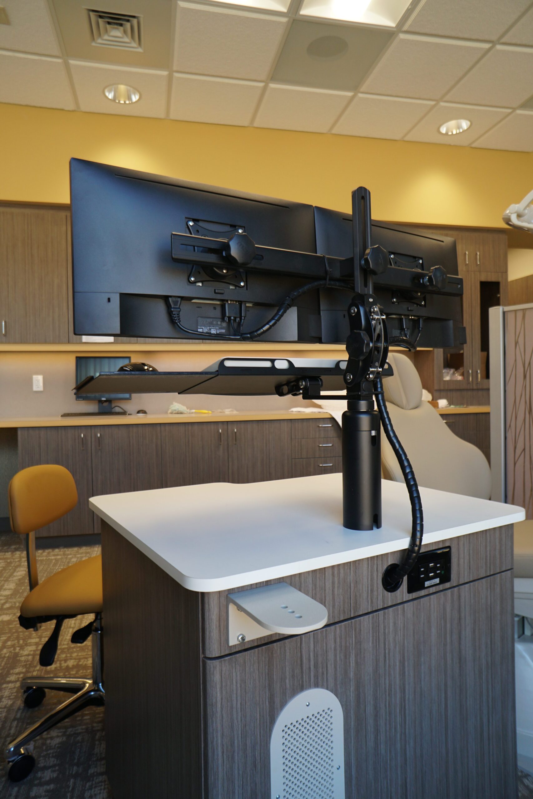 Having the elevated keyboard and mouse also frees up the counter space for tools and supplies.