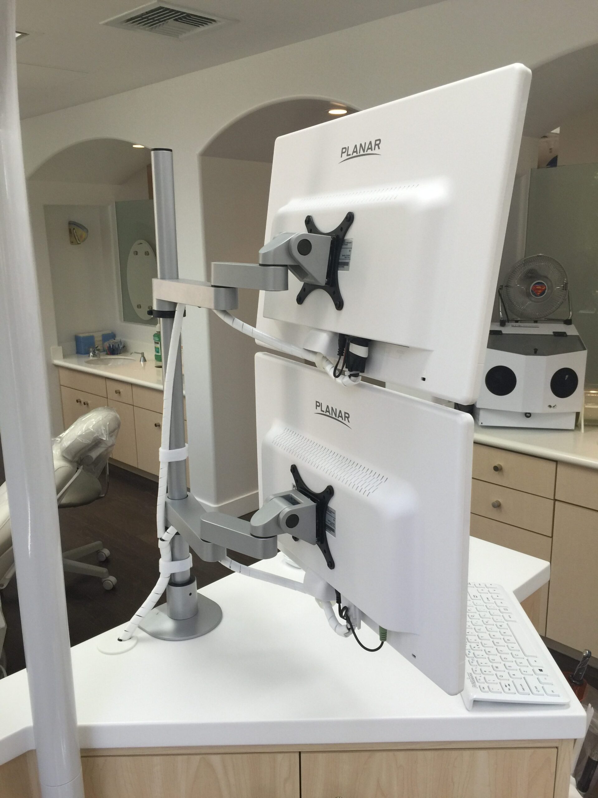 When coupled with white keyboards, mice and light monitor mounts can lead to a very clean and aesthetic look.